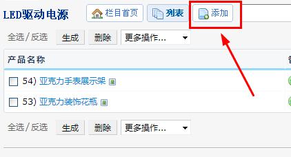 下面教大家如何新增一个产品,见下图,在产品中心下面随便点一个产品分类进去,见下图: